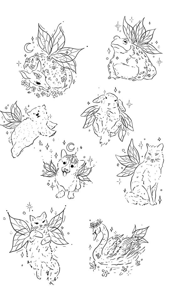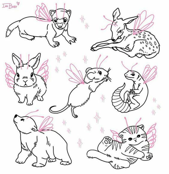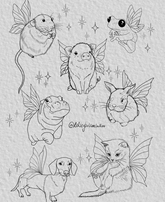 Flying kitties! Sparkly bunnies! Oh my! These adorable winged-creatures are the cutest inspiration for your next dainty tattoo