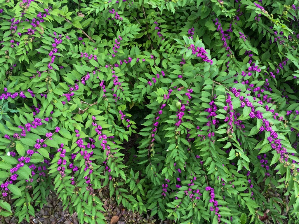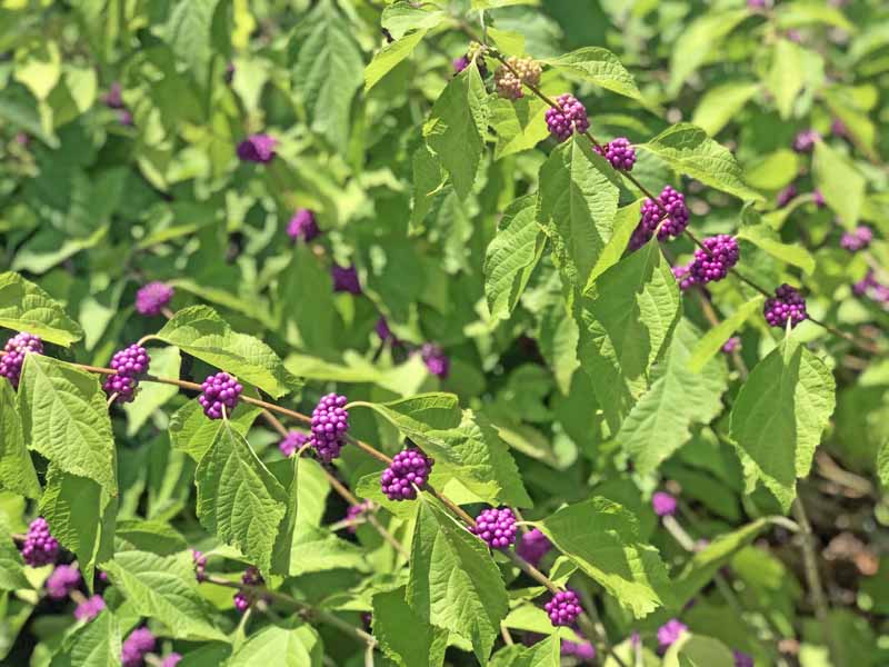 Then arrives the namesake of this plant…tiny, bright purple berry clusters burst forth, throughout late Summer and early Autumn, and last even longer.