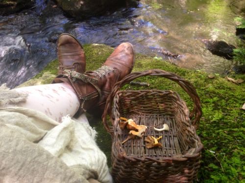 Pockets jammed with bottle caps, old coins, and pretty rocks collected from the riverbed. A sketchbook full of stamps, fruit stickers and mushroom drawings in colored pencil. A heart bursting with love and adoration for the forest’s glistening underbelly and all that dwell within.